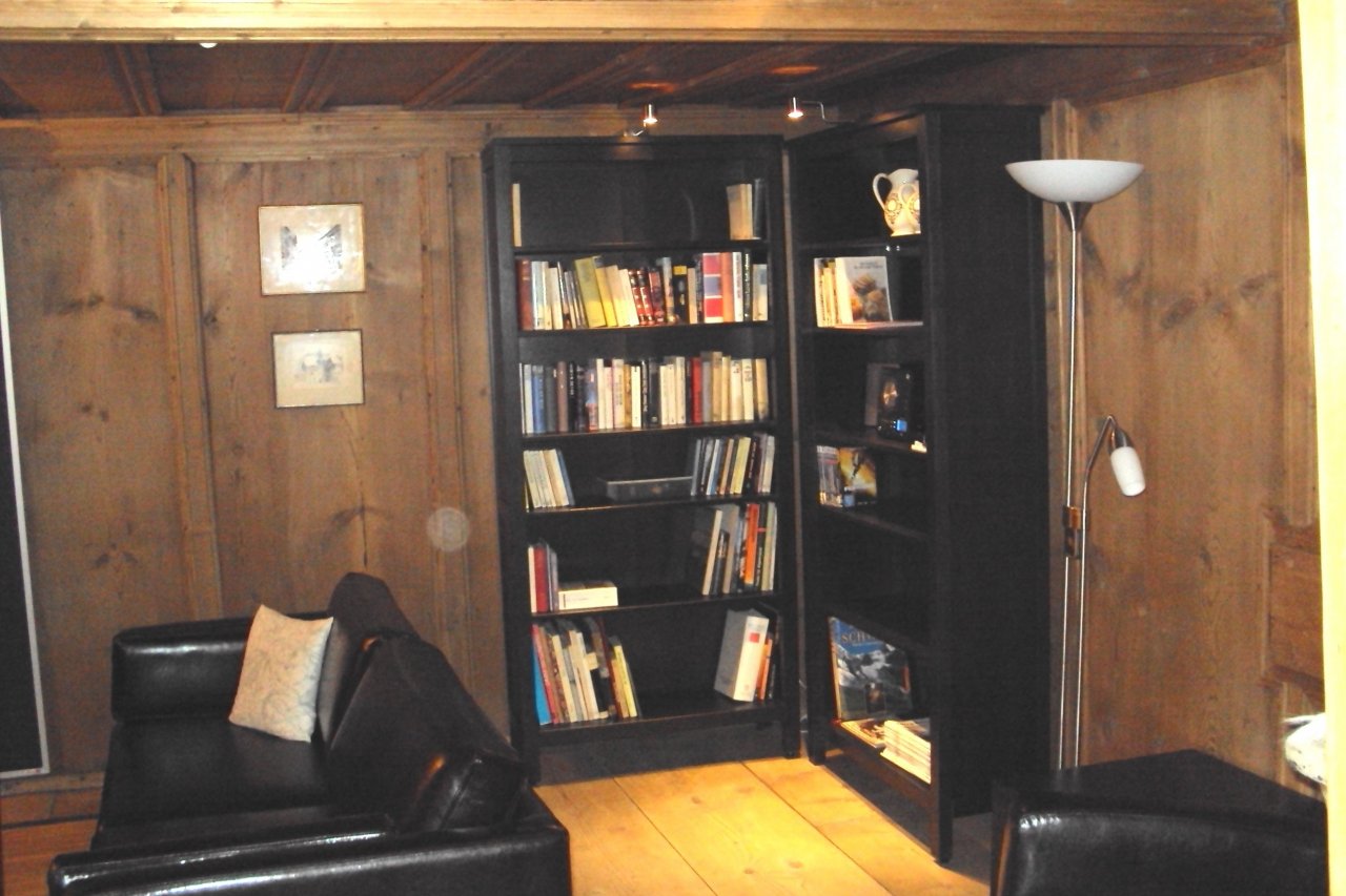 1 Wohnstube mit SAT-Plasma HDTV, Leder-Sitzecke, Bücherregale, Tisch und Stühle