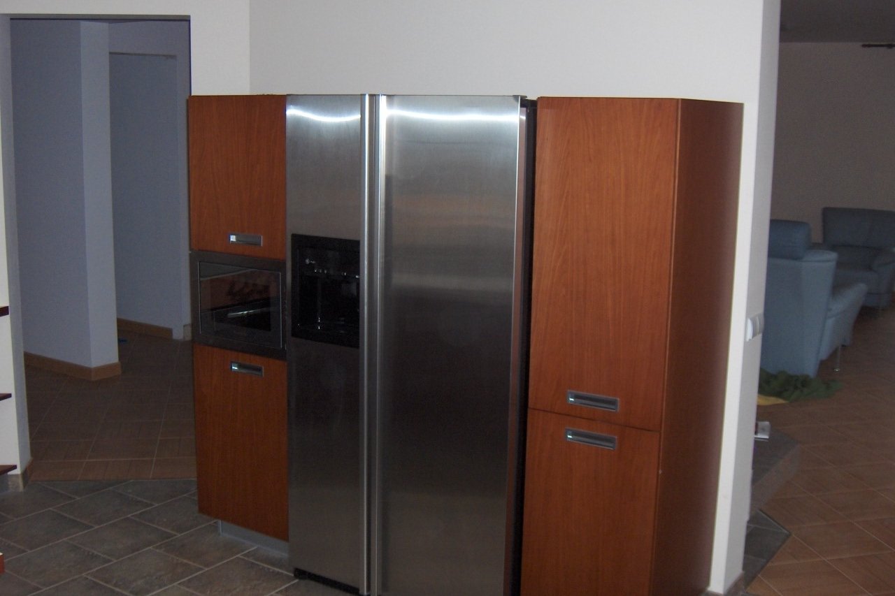 Die Küche ist in Original-Mahagonifarben gestaltet und hat einen Edelstahl-Grill-/Backofen, eine Keramikkochplatte und einen Kühlschrank/Gefrierschrank in amerikanischer Ausführung. Selbstverständlich sind auch eine Mikrowelle und ein Geschirrspüler vorhanden. Außerdem ist die Küche weiterhin mit allen Kochutensilien ausgestattet.