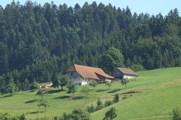 Unser Haus liegt ca. 2 km außerhalb des Ortskerns alleine auf einer Anhöhe (ca. 450 müM) inmitten von Wiesen und Wäldern - Straßenlärm suchen Sie hier vergeblich.