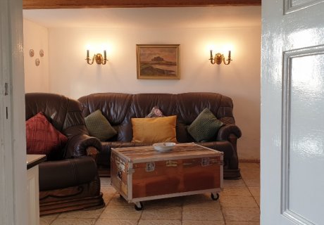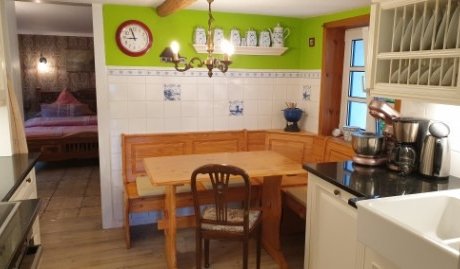 Unsere Fischerkate bietet 2 Schlafzimmer für max. 4 Personen, eine gemütliche Wohnstube mit Ledergarnitur und Kaminofen, komplett ausgestattete Küche mit Sitzecke, Bad mit Badewanne und bodengleicher Dusche, Diele mit Hundebett und Hundebar. Der große eingewachsene Garten mit Terrasse, Rasenfläche, Gartenmöbeln und Strandkorb ist komplett eingezäunt.