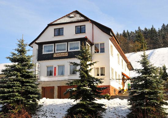 Kleine gemütliche Pension mitten im Thüringer Wald bietet 4 Zimmer und 1 Ferienwohnung (mit oder ohne Frühstück) ab 23,-€ pro Person/ Tag. Ruhige, zentrale Lage in unmittelbarer Nähe zum Rennsteig. Unsere Zimmer sind gemütlich und modern eingerichtet. Kostenlose Parkplätze sowie eine Liegewiese und Terrasse mit Garten stehen Ihnen zur Verfügung. Wir sind idealer Ausgangspunkt für Ausflüge und Wanderungen aller Art. Sportliche und kulturelle Ziele (z.B. Biathlonweltcup, Skirennen, Rennsteiglauf, Theater Meiningen, CCS Suhl, Naturtheater Steinbach-Langenbach uvm) sind schnell erreicht. Zu jeder Jahreszeit ist unsere herrliche Gegend eine Reise wert.