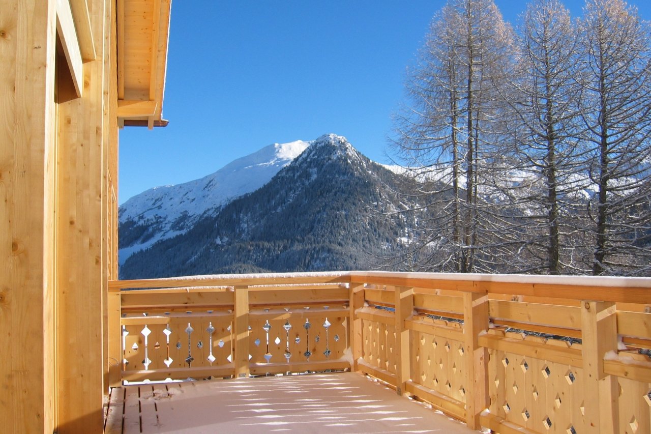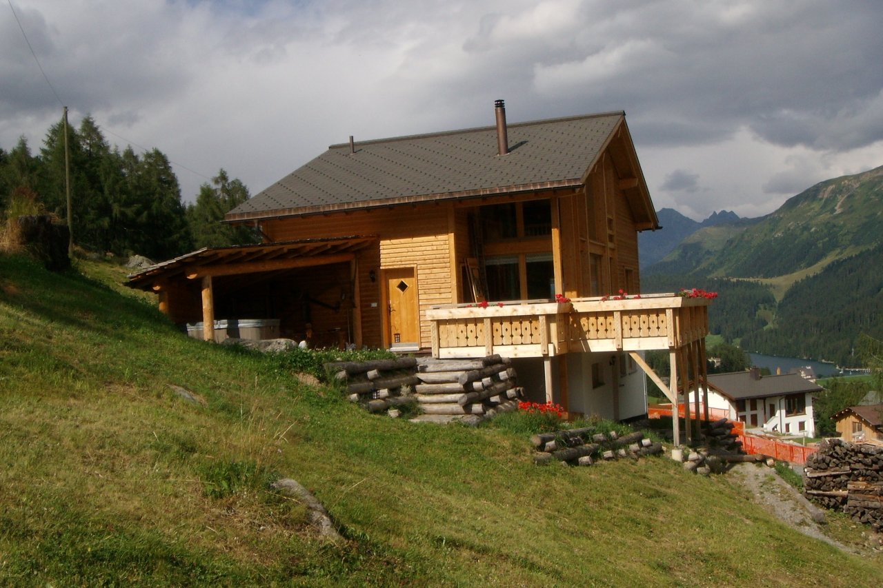 Davos Dorf, an Waldrand gelegenes Ferienchalet, neben der Parsenn Skipiste. Einmalige Aussicht über Davos.