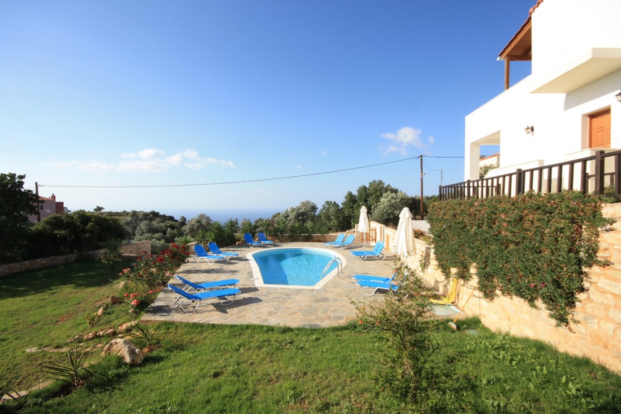 Die Villa liegt am Rande des Dorfes Roussospiti sehr ruhig mit fantastischen Blick zum Meer und Gebirge, wo Sie täglich den Sonnenuntergang genießen können. Eigener Garten mit Grillplatz und Grill, Gartenmöbel u. Sonnenschirm vorhanden, ein Autoabstellplatz, im angrenzenden Grundstück 540m2 freie Pool, Liegen und Gartenbenützung, Sonenschirme sind vorhanden. Hier sind Sie in einer des besten Wohngegenden von Rethymno, in der sich viele Griechen mit großen Häusern angesiedelt haben. Rusospiti ist sehr beliebt wegen des guten Klimas und der Stadtnähe zu Rethymno. In der Stadt finden Sie alles was das Herz begehrt, von einer entzückenden Altstadt mit Festung, Minaret, Museen und alten Hafen bis zu allen Sommer-Sportmöglichkeiten am 15km langen Strand. Auch die herrliche Südseite der Insel ist in nur 28km erreichbar.