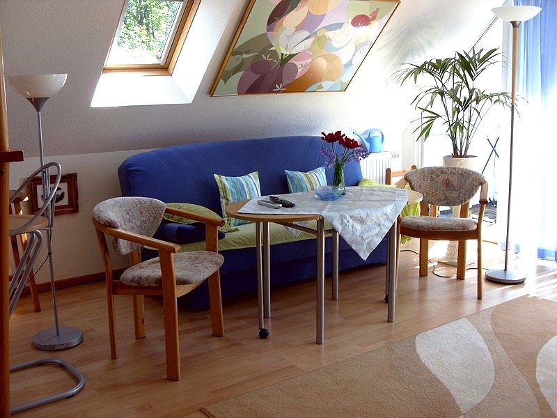 DSL-Internetzugang. Modern eingerichteter Wohnraum, 50 qm, - komplette Küchenzeile, Mikrowelle, Herd mit Backofen. 2 Betten, 1 Schlafcouch. . LCD-TV, Stereoanlage mit Radio und CD-Player, Videorecorder mit Kassetten, DVD - Player. Grillplatz im Garten. Parkplatz vor dem Haus. Bettwäsche, Handtücher und Nebenkosten sind im Preis enthalten. Waschmaschine, Wäschetrockner,Tiefkühlschrank, Sauna im Haus. Haustiere erlaubt.