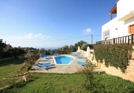 Die Villa liegt am Rande des Dorfes Roussospiti sehr ruhig mit fantastischen Blick zum Meer und Gebirge, wo Sie täglich den Sonnenuntergang genießen können. Eigener Garten mit Grillplatz und Grill, Gartenmöbel u. Sonnenschirm vorhanden, ein Autoabstellpla